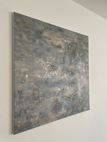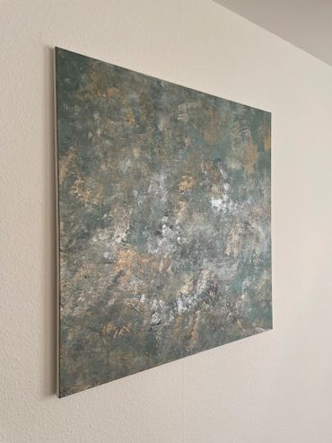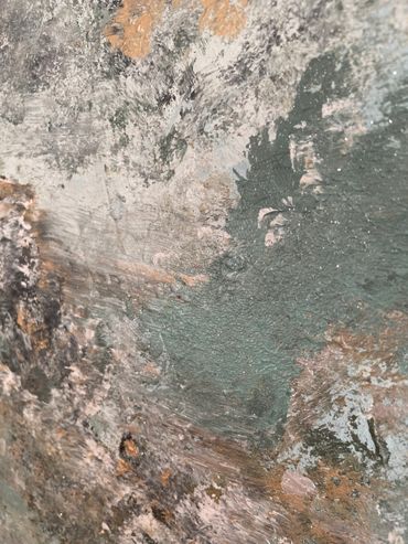 Treasure is a radiant piece inspired by the boundless richness of our world and the unique gifts each of us possesses. The canvas unfolds in a symphony of earthy colors and textures, mirroring the diversity of treasures found on Earth. At the heart of the painting, a radiant core symbolizes the intrinsic gifts within us all, waiting to be shared with the world.